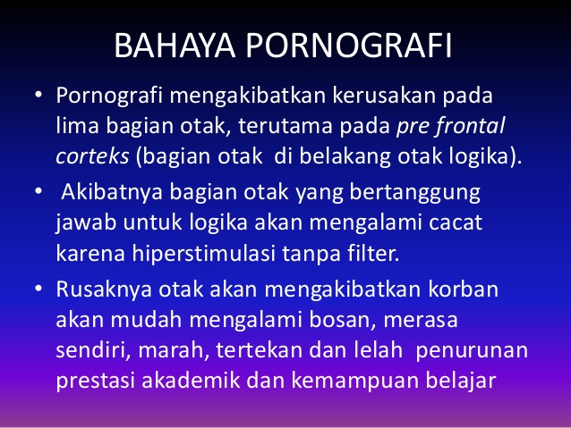 Kementerian Pendidikan dan Kebudayaan RI belum lama ini merilis kampanye hidup indah tanpa pornografi. Menurut Kemdikbud, pornogradi dapat merusak bukan hanya otak dewasa tapi juga anak. Kerusakan otak itu juga disebut sama dengan otak pada orang yang mengalami kecelakaan mobil dengan kecepatan sangat tinggi.